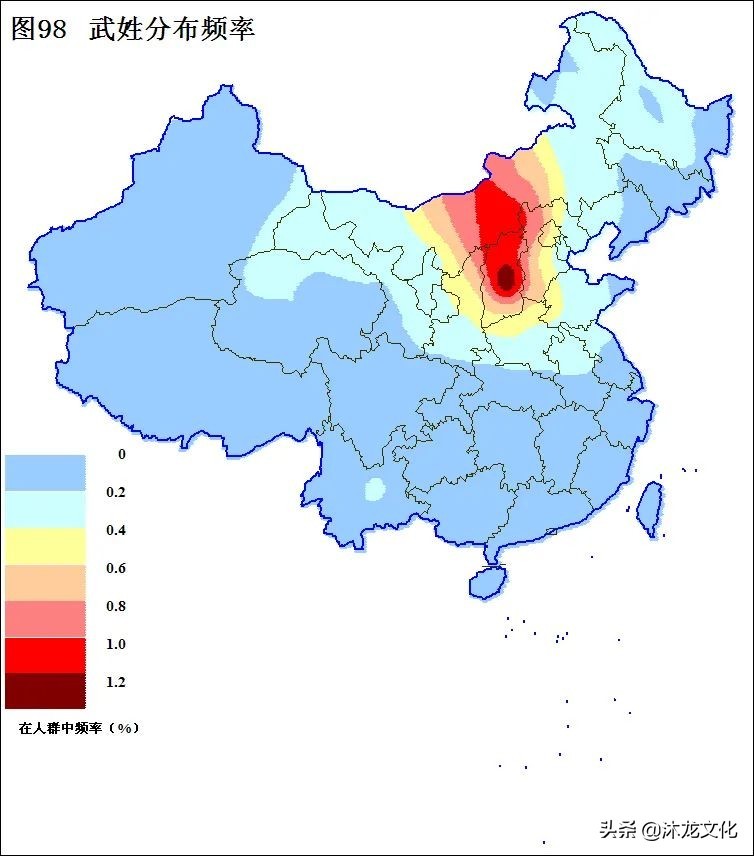 武姓是中国人口最多的第九十八位姓氏,在晋冀豫地区最有影响。当今武姓人群大约占了全国人口的0.18%,总人口大约在239万。