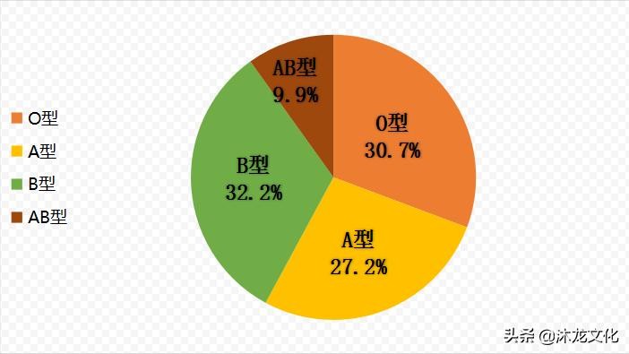 O型占30.7%,A型占27.2%,B型占32.2%,AB型占9.9%。