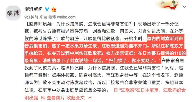 江歌案庭审全录!嫌犯律师:刀是刘鑫递的,陈世峰不带杀人动机