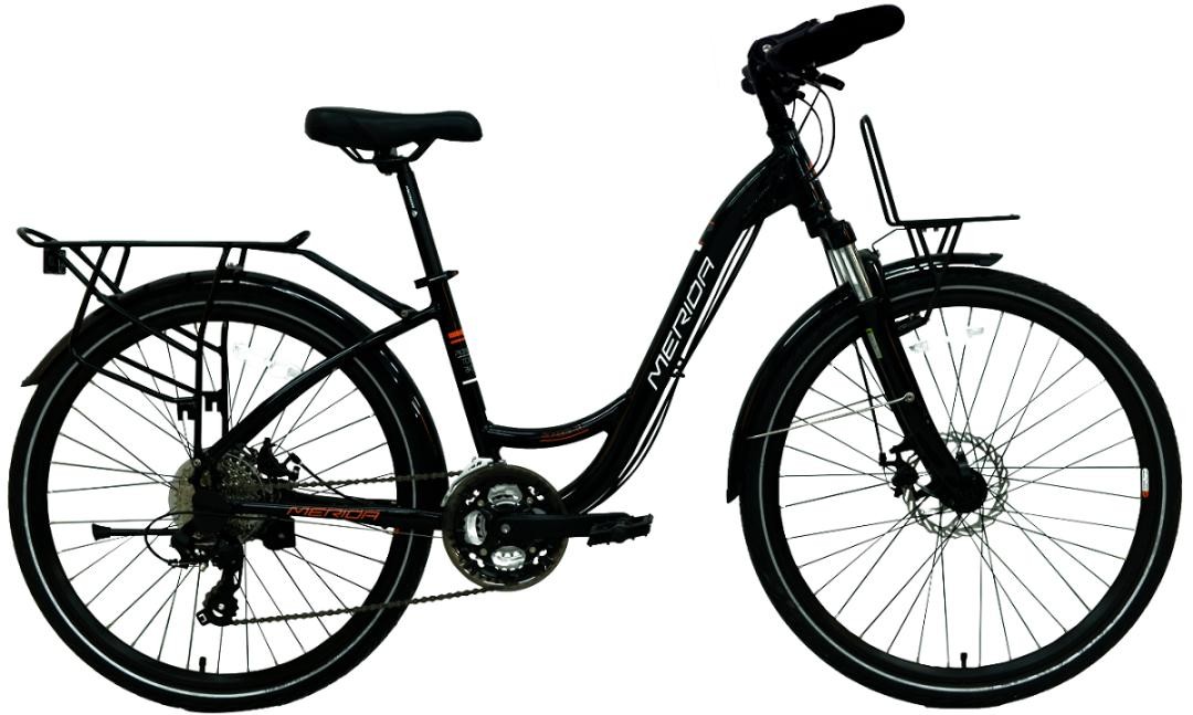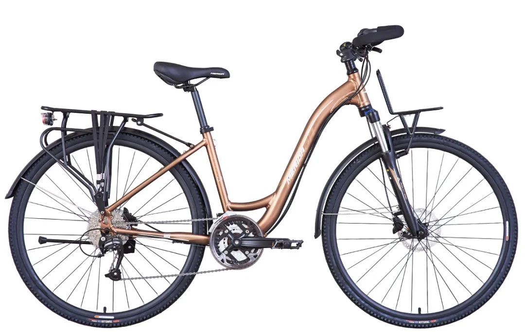 作为美利达旅行车款,低跨点的车架设计,承载着方便及舒适重任。多重操控方式的蝴蝶把和宽大柔软的坐垫构成舒适的驾驶舱。避震前叉有效缓解颠簸路面的冲击,提高舒适度。