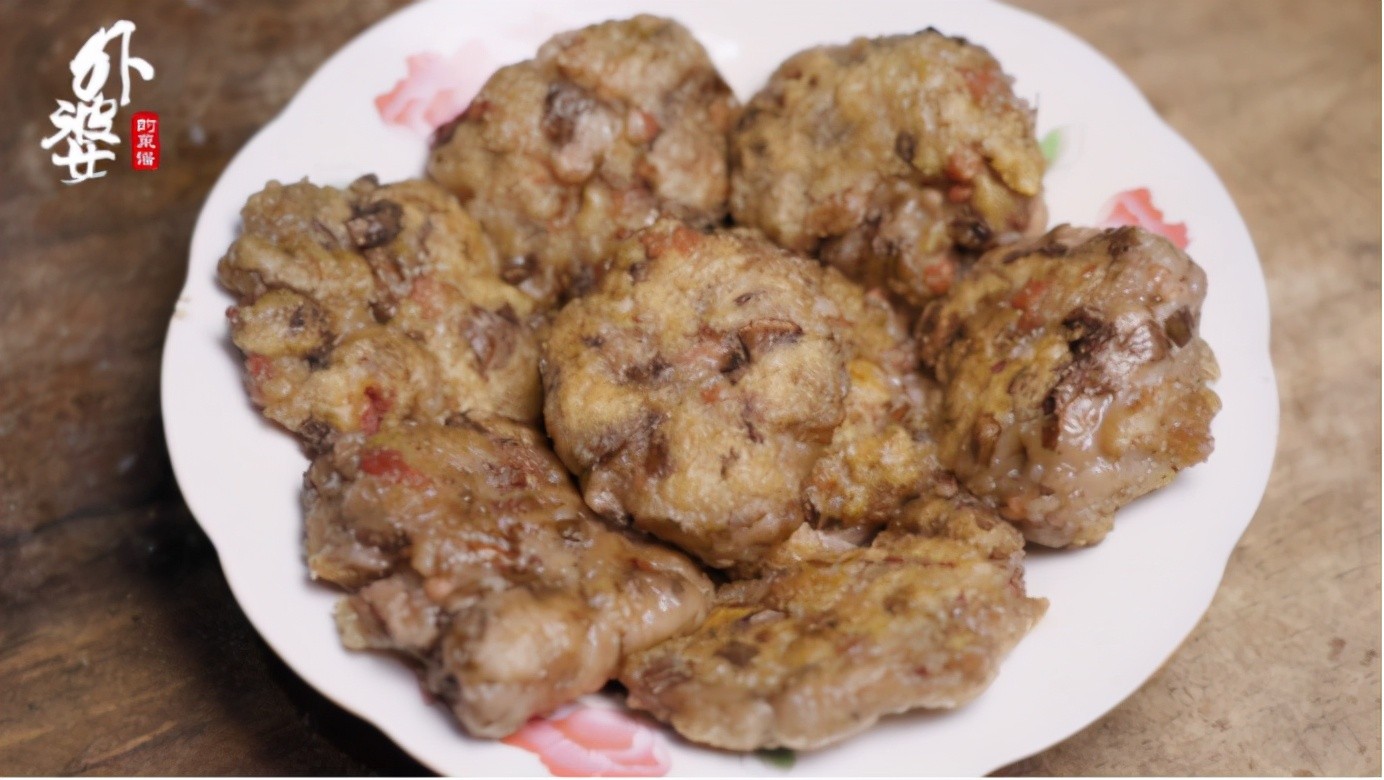 芋梗干泡发后,在五花肉的油脂浸润下变得丰腴鲜香,而糯米粉的加入又给芋梗增添了软糯弹牙的口感,不论是平日充饥还是待客都是很不错的土味小饼。
