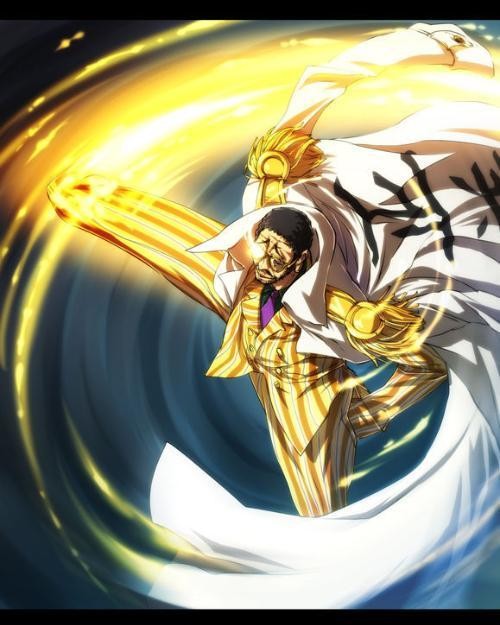 本名波鲁萨利诺,果实为自然系闪闪果实,因为其果实原因,他的速度超过了光速,在香波地群岛以“镭射”、“光速踢”轻松秒杀四位海贼超新星"魔术师"巴兹尔·霍金斯、"海鸣"斯库拉奇曼·阿普、"赤旗"X·德雷克和"怪僧"乌尔基。在跟草帽团的战斗中,黄猿前所未有的出现了施法前摇,在要杀死索隆时被雷利赶上救下了索隆。顶上战争时把路飞踢到白胡子身边,并用“八尺琼勾玉”攻击罗的潜水艇,虽然一下都没打中。因此黄猿被一些海米称为“革命军间谍”。