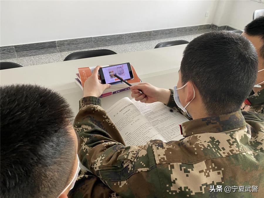 除了自学和探讨交流,中队根据疫情期间封闭管理的特点,充分发挥“网课”的作用,利用手机、电脑上网课,帮助官兵突破薄弱学科。