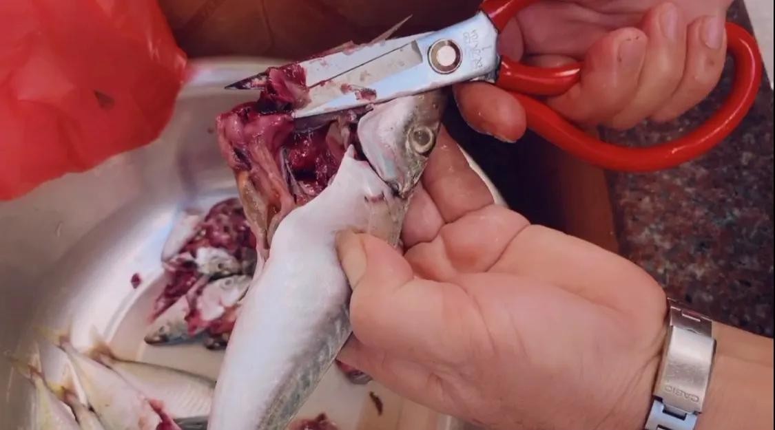 1:买回来的巴浪鱼用剪刀将腹部剪开,再把内脏去除。