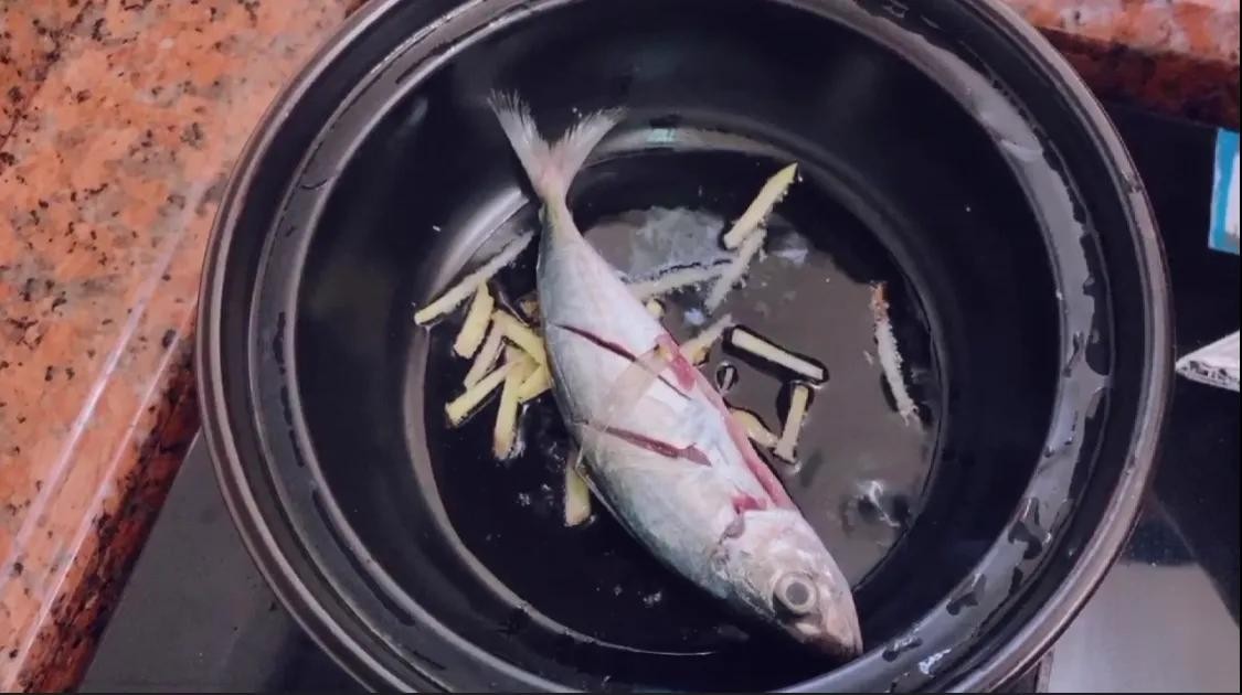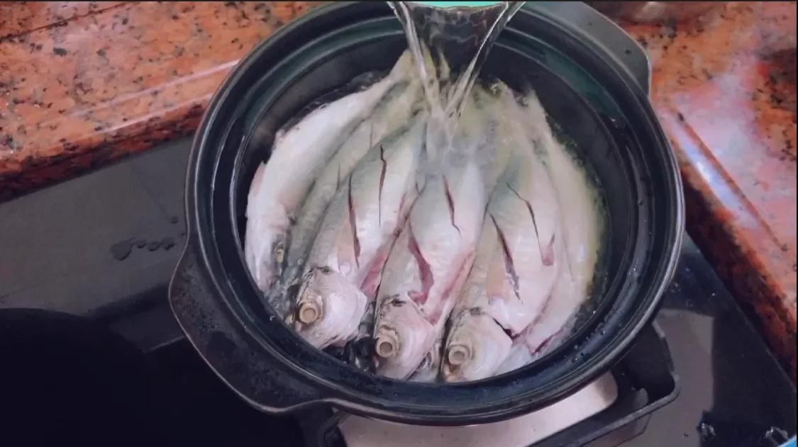 3:砂锅热油,放入姜丝爆香,爸巴浪鱼整齐摆放入砂锅内。