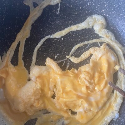 1、鸡蛋打散炒熟后盛出备用;