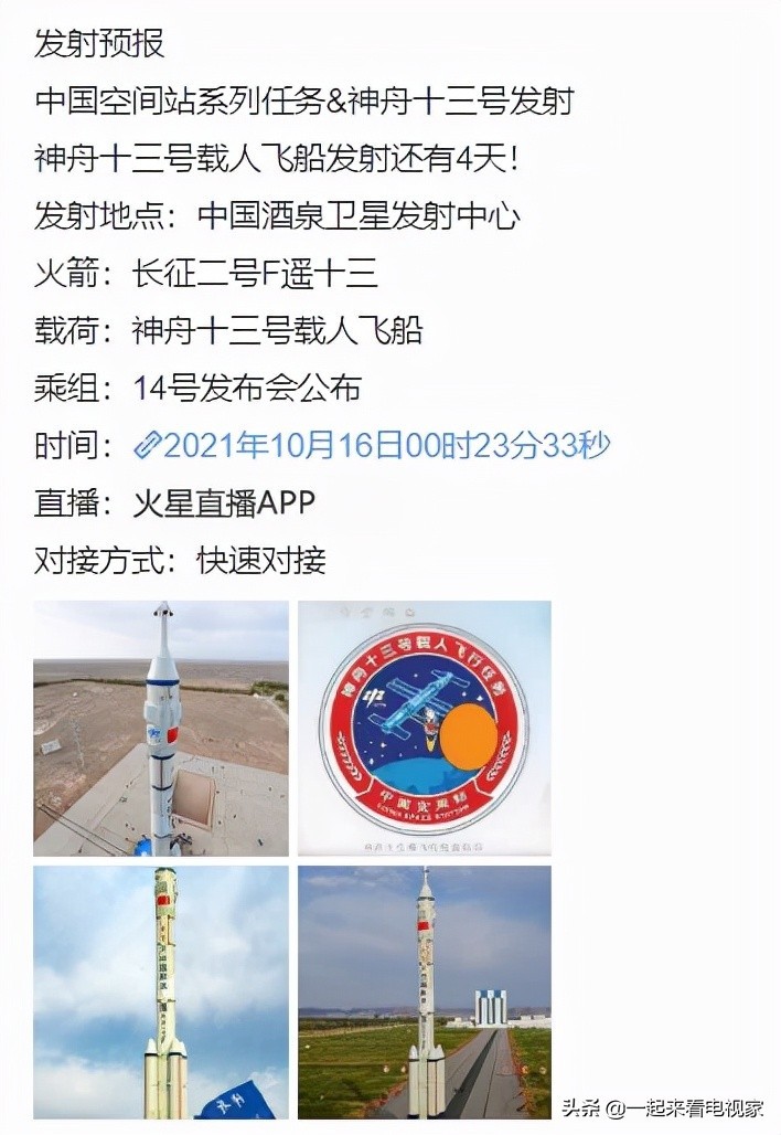 神舟十三号将乘载3名航天员在太空生活,与十二号不同的是,这一次他们将在太空生活6个月,据悉十三号会在10月16号发射,发射直播时间是几点呢?在哪里发射?因为很多人不能在现场观看发射,所以只能通过直播观看,我们可以在哪里观看发射现场直播呢?