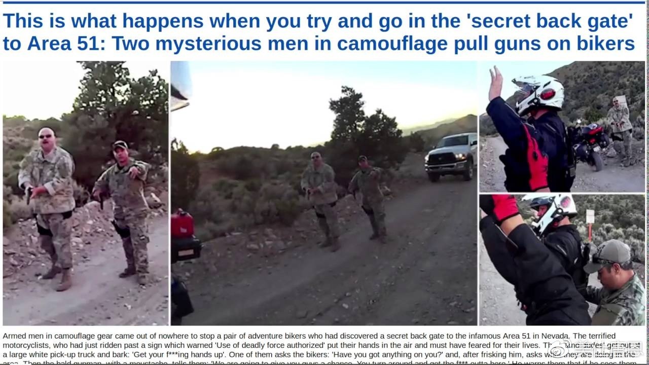 在YouTube上也有博主为了点击量骑着摩托车试图闯入这个地区,结果就在刚刚跨越边界的时候,真的就有巡逻人员到达现场,拦停了他的摩托车,并警告他立刻离开这里,其实这不是第一次进入51嗯区的尝试,几十年来,无数的好奇者都慕名而来,有些甚至是从国外来到这里,想要进去一探究竟,因为这里的传说实在是太过吸引人了——据说这里不光有超越现有科技能力的秘密武器,甚至还有外星人的飞船和尸体。