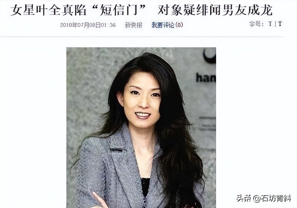 短信是发给成龙的,内容十分文艺,“夜半梦醒再度凝望相片中你的身影……因为思念,因为爱……”,署名则是“爱你的叶子”。