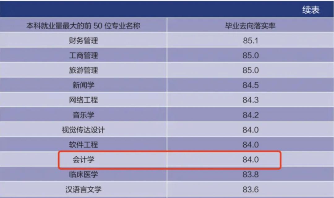 据《2024年中国本科生就业报告》,2023届本科毕业生里,会计学就业率已经滑落至84%。