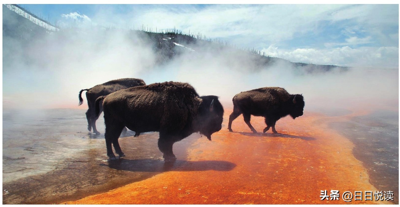 一处处闪闪发光的湖泊也是这里不可错过的景观,位于公园中心的黄石湖(Yellowstone Lake)是密西西比河的发源地,清澈见底的湖水经过一个缺口流入黄石大峡谷(Grand Canyon of the Yellowstone),形成了著名的黄石大瀑布(Yellowstone Falls)。将公园内的山峦彼此串联在一起的还有大大小小的河水与溪流,它们在灼热的熔岩上流淌,形成了3000多处温泉以及300多个罕见的间歇泉。泉眼仿佛巨型花朵,异彩纷呈且深不见底。灼热地充满了各种颜色的黏稠泥浆在一起翻滚沸腾,发出“咕嘟咕嘟”的巨响,形成难得一见的地热奇景,也证明黄石国家公园的所在地仍有活火山存在。