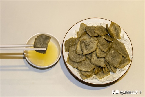 姜丝排叉又叫姜汁排叉,不仅是北京传统小吃,也是北京茶菜的一个品种。从其名就可知道,姜丝排叉原料中一定有姜,其名也因食用时有明显的鲜姜味而得。