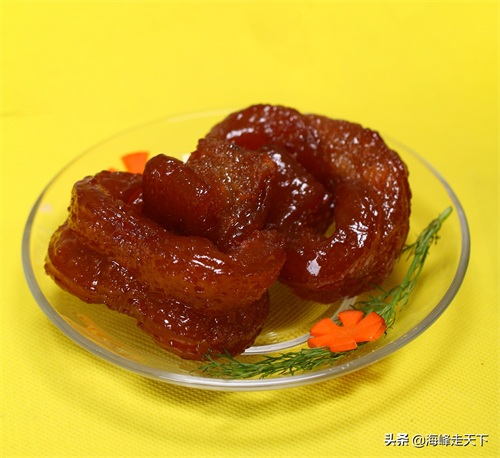 糖卷果是老北京点心中的名品,是从回族流传出的清真点心,深受老北京人的喜爱。另外,它也是一道药膳。其主料为山药和大枣,配以青梅、桃仁、瓜仁等辅料。山药富含蛋白质、纤维素和维生素,且有补中益气、健脾养胃等功效。