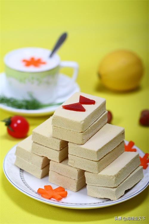 绿豆糕是老北京传统特色糕点之一,属消暑小食。炎热的夏季到来时,用绿豆做成的绿豆糕就成了最好的消夏小吃。绿豆又叫“青小豆”,具有清热解毒、祛暑止渴、保肝益肾、美肤养颜的功效。用绿豆粉作为主料,配以豌豆粉、桂花和黄砂糖,做出来的绿豆糕细润紧密、清香绵软,是深受百姓喜爱的传统糕点之一。