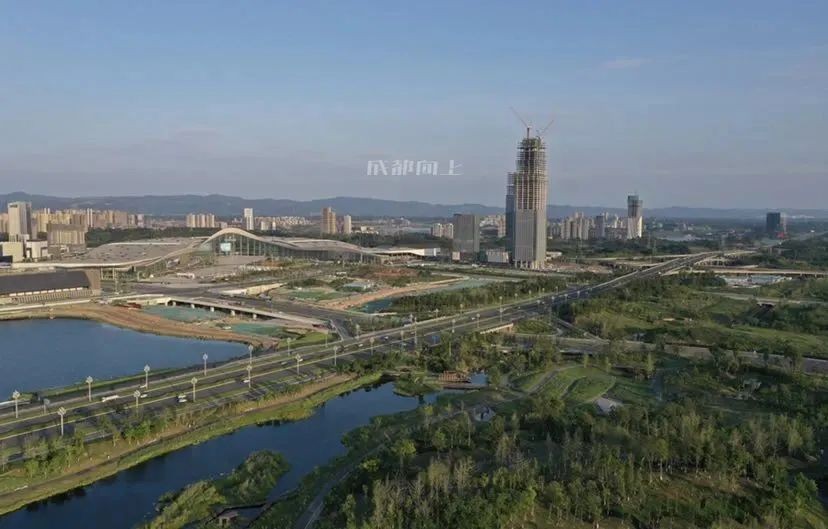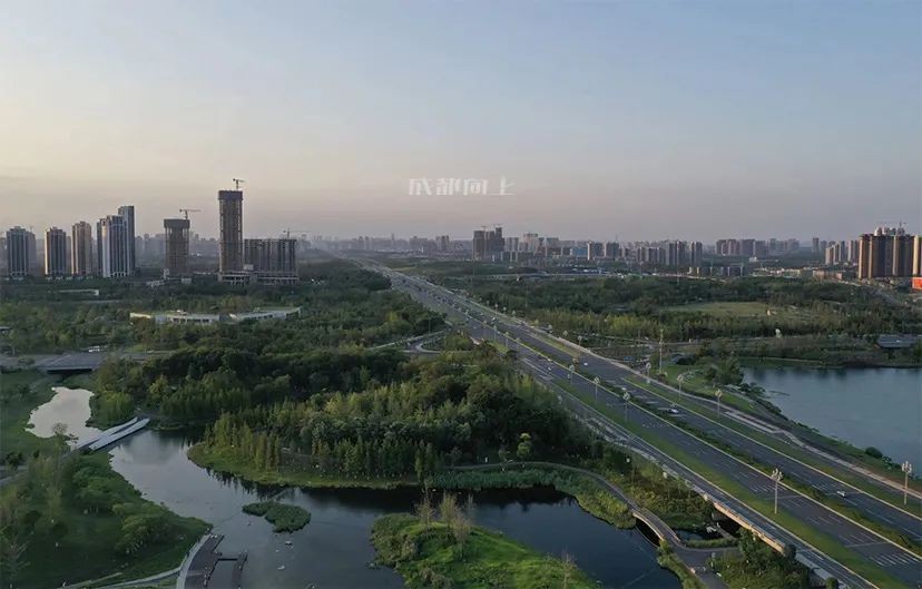 天府公园,世界最长城市中轴天府大道将其贯穿,它就是天府新区的调色盘。