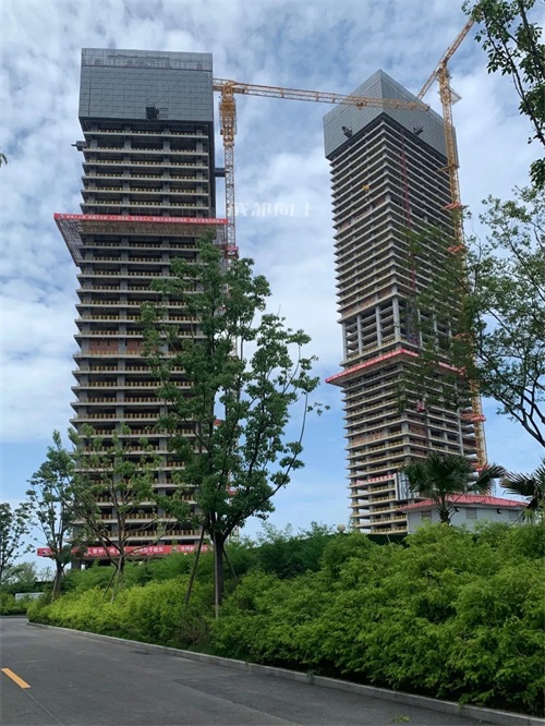 在这里,UP君看到了真正的公园城市生活方式,生态环境真的不摆了。在杭州路西段以北区域,最扯眼球的当属在建的两栋高楼,工程名为花园城国际度假中心B区一、二期,背后还有一个项目,是该项目配套的五星级酒店。