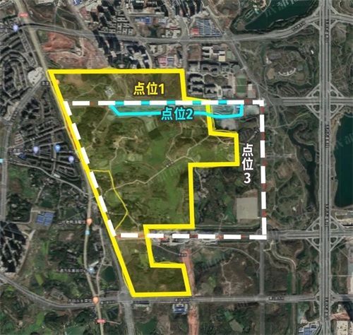 不过就现场来看,动工的点位也就三个,一是天府七中西侧那块区域,房子已经有一二十米高了(点位1);二是围挡内在建的19号线二期项目(点位2);三是雅州路西侧(点位3)正在修建招商蛇口的城市展示厅项目。
