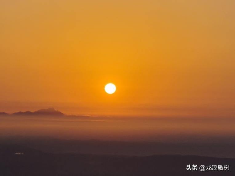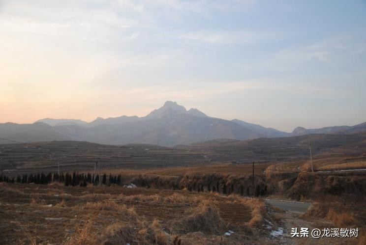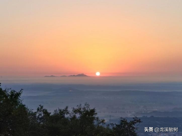日出旸谷,在方山上看日出,远处山峰是牙山