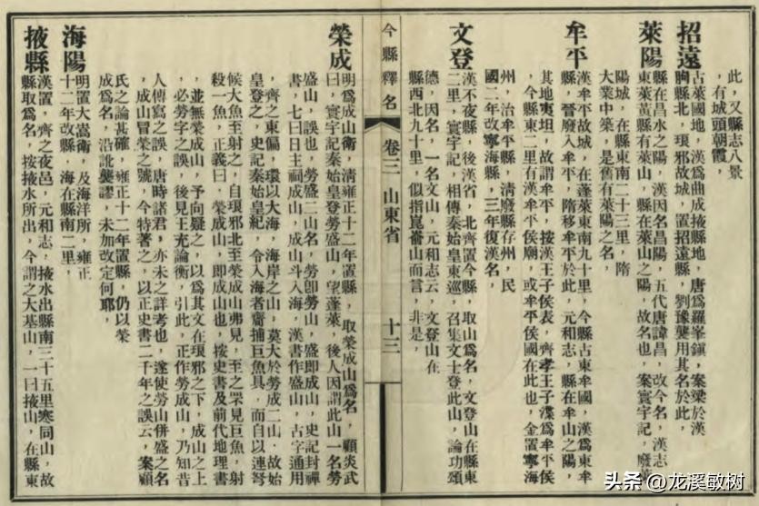 《今县释名》关于栖霞以及其他胶东地区县名的记载