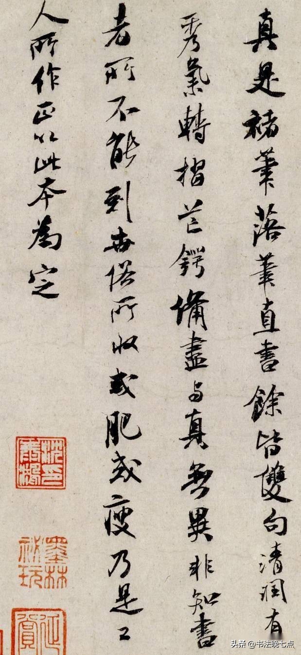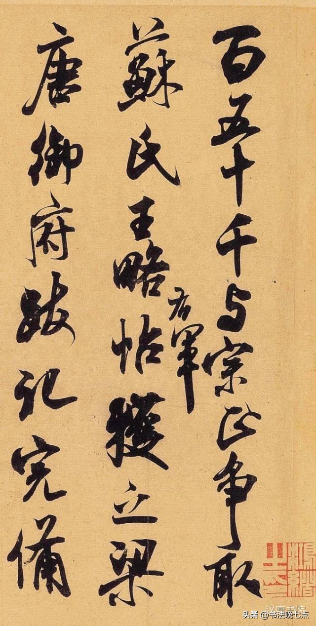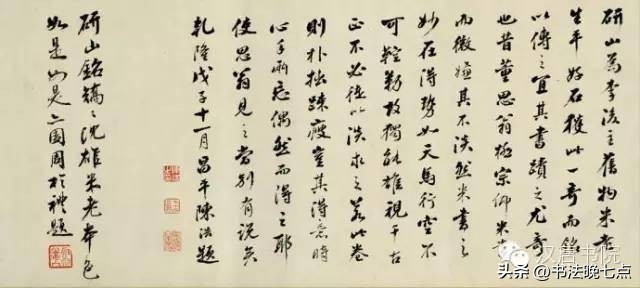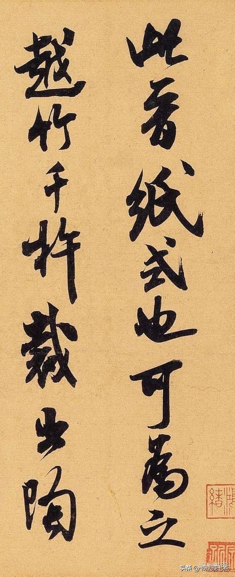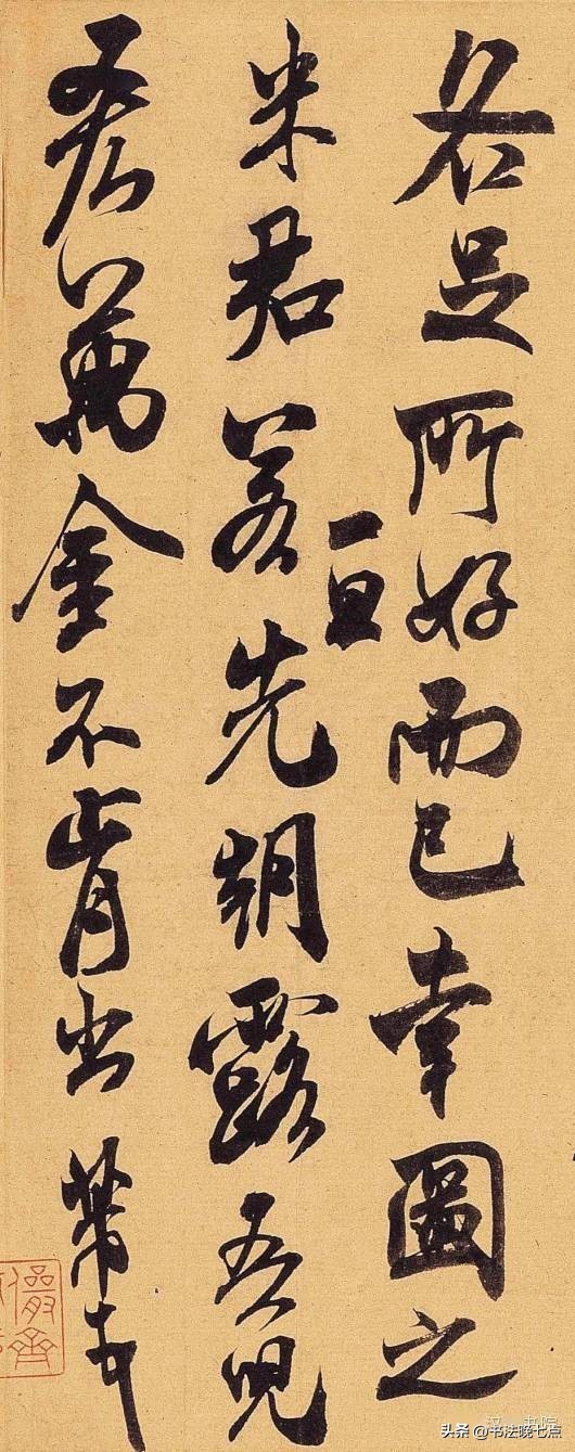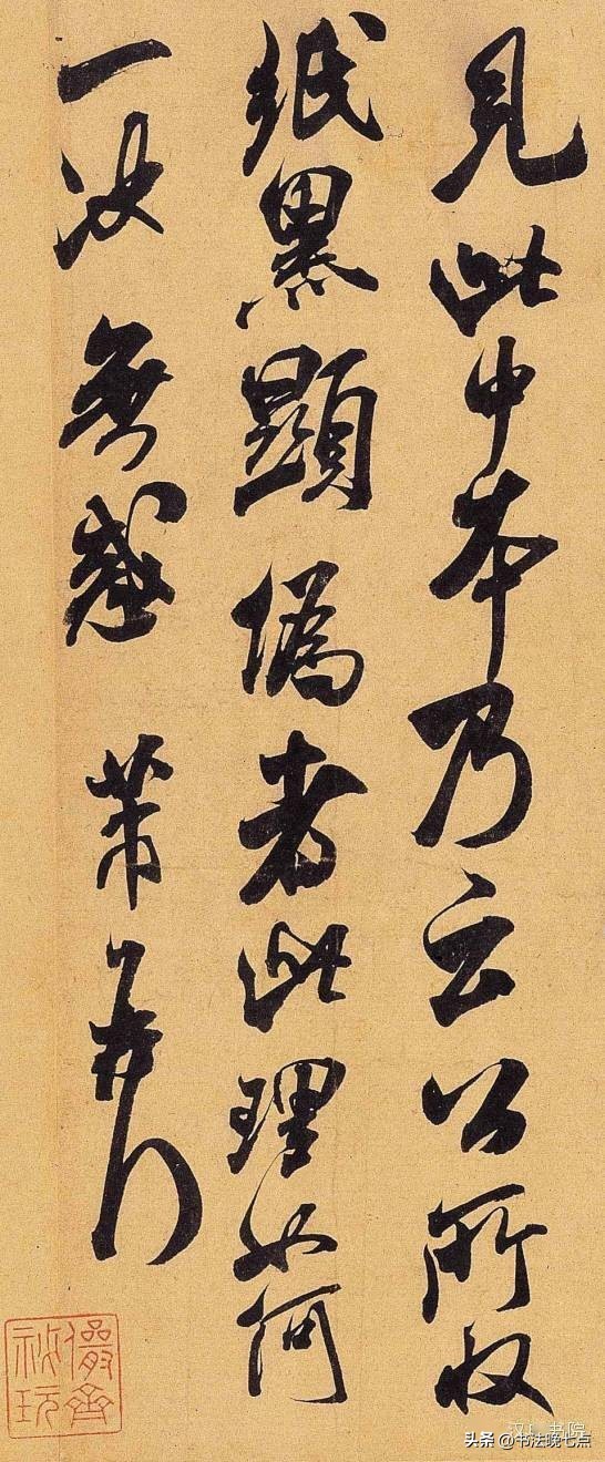 尺寸:纵24.7厘米,横37厘米释文:“草书若不入晋人格。辄徒成下品。张颠(癫)俗子。变乱古法。惊诸凡夫。自有识者。怀素少加平淡。稍到天成。而时代压之。不能高古。高闲而下。但可悬之酒肆。辩光尤可憎恶也。”