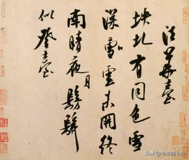 《砂步诗帖》是米芾晚年时期(约1107年)创作的一首诗。此诗主要表达了米芾对于秋天景色的喜爱以及对老友相聚时刻的怀念。整篇作品用笔流畅自然,结构紧凑有序,给人以清新淡雅之感。《砂步诗帖》不仅展示了米芾高超的书法技艺,也反映了他对于友情及自然美景的深情厚谊。