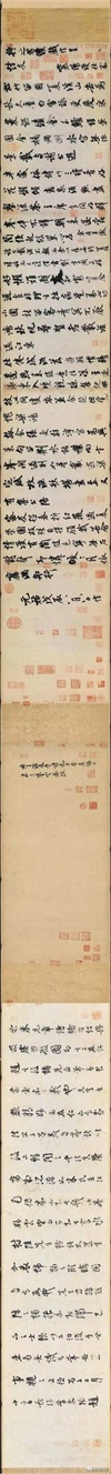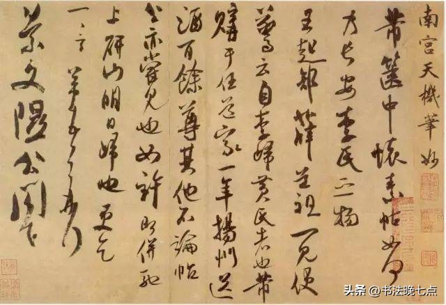 《箧中帖》也是米芾晚年(约1105年)的一件重要作品。此帖讲述了米芾购买怀素帖的过程及其背后的故事。通过这段文字,我们不仅能够了解到当时书画市场的状况,还能感受到米芾对于艺术品收藏的热情。《箧中帖》用笔流畅自然,结构疏密有致,充分体现了米芾晚年书法技艺的高超水平。