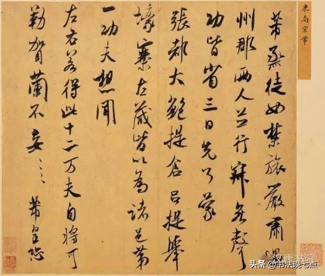 释文:“十一月廿五日。芾顿首启。辱教。天下第一者。恐失了眼目。但怵以相知。难却尔。区区思仰不尽言。同官行。奉数字。草草。芾顿首。伯充台坐。”
