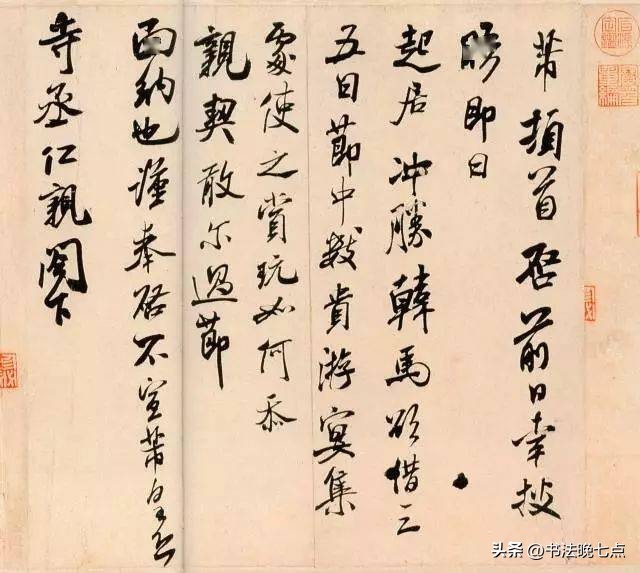《韩马帖》是米芾晚年时期(约1107年)创作的一件作品。此帖主要讲述了米芾希望能够借用朋友韩马几天用于参加宴会赏玩的事情。整篇作品用笔流畅自然,结构紧凑有序,给人以礼貌周全之感。《韩马帖》不仅展示了米芾高超的书法技艺,也反映了他对于社交活动积极参与的态度。