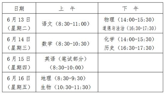 1.考试日期为6月13日—16日,具体安排如下:
