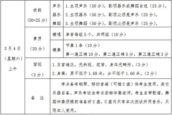 测试地点:音乐在寒亭区第一中学艺津楼(艺术楼)二楼;美术在艺津楼(艺术楼)三楼308教室;体育在寒亭区第一中学体育场。专业测试过程录音录像。