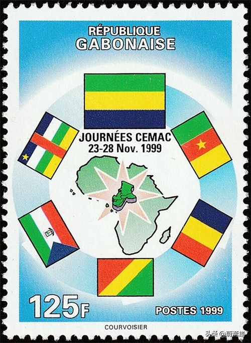 加蓬在1999发行了纪念中部非洲经济与货币共同体成立日邮票,图案为地图及成员国国旗。