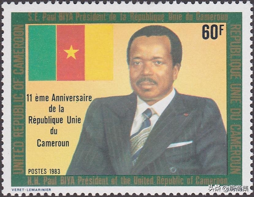 1983年,喀麦隆发行了纪念独立11周年邮票,图案为国旗与比亚总统,这也是比亚总统第一次登上喀麦隆邮票。
