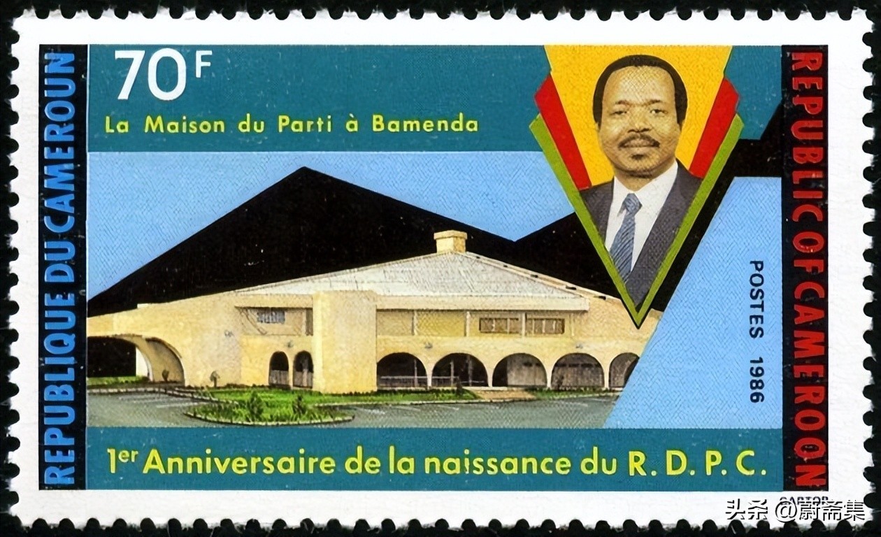 1985年,由比亚总统领导的执政党喀麦隆民族联盟更名为喀麦隆人民民主联盟。1986年,喀麦隆发行了喀麦隆人民民主联盟成立1周年纪念邮票,图案为比亚总统和位于西北省省会巴门达的党部建筑。
