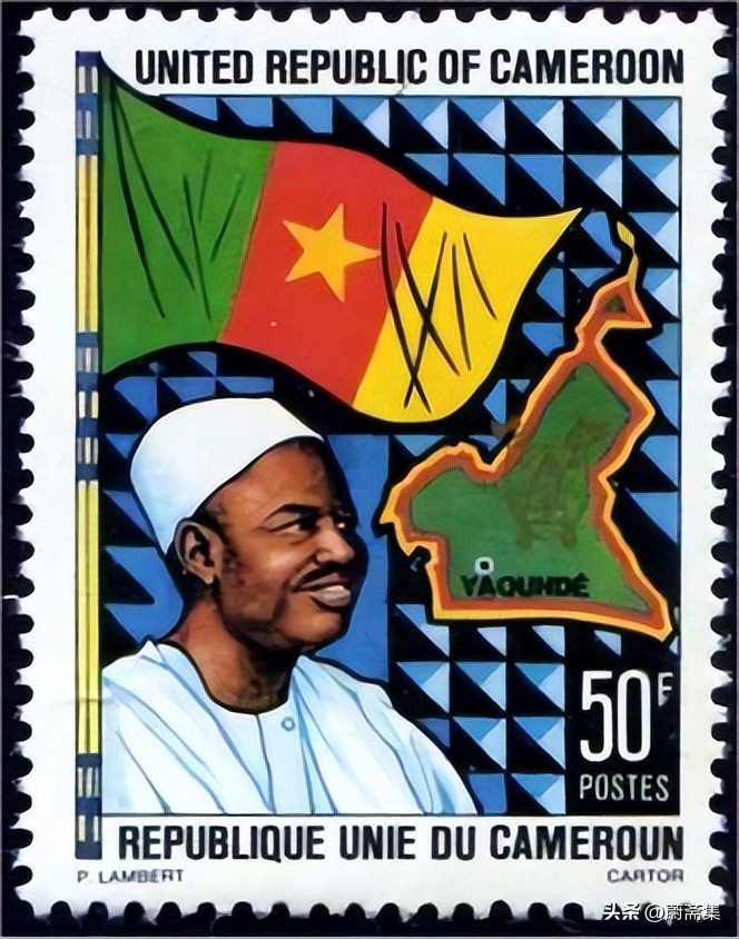 1963年,喀麦隆发行了纪念国家统一2周年邮票,图案为喀麦隆国旗与首任总统阿希乔。