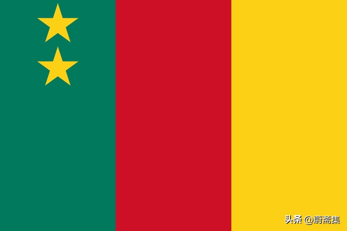 1957年10月,法属喀麦隆成立自治政府,成为法兰西共同体内的自治共和国。喀麦隆自治政府的国旗是典型的非洲色,绿、红、黄三色。
