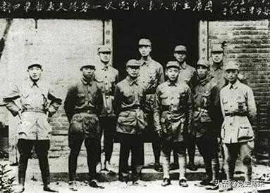 ◆新四军游击支队第一次党代表大会主席团合影,前排左起:李耀、谭友林、彭雪枫、滕海清、萧望东、方中铎,后排左起:张先舟、张震、岳夏、吴芝圃。