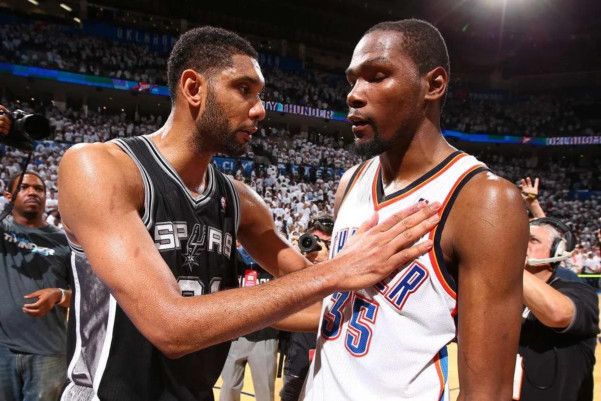 15-16赛季,马刺遇到了重新整装出发的雷霆,在青春风暴面前,年迈的马刺队最终还是败下阵来。当邓肯低头走出切萨皮克能源球馆时,没有人愿意相信这是石佛留给球迷和自己职业生涯的最后一个背影。