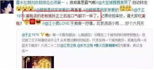 2011年,话题导演于正转发江一燕的微博,正面调侃她是“蛋糕店的老板娘”。