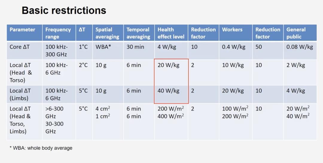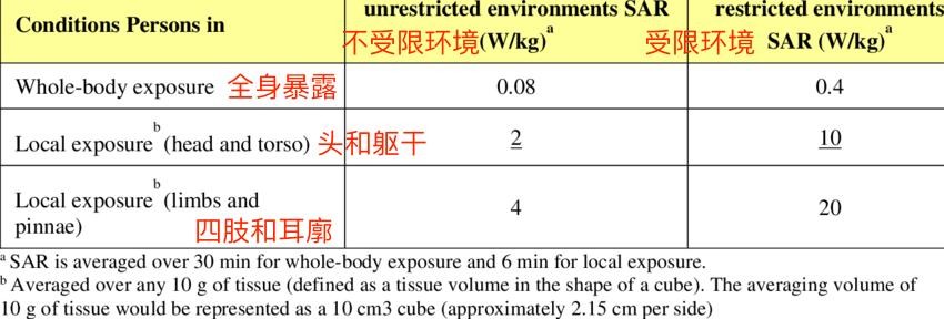 国际机构确实是将100 kHZ~6 GHZ频段SAR的安全数值,设定在了头部2W/kg、四肢4W/kg不假。