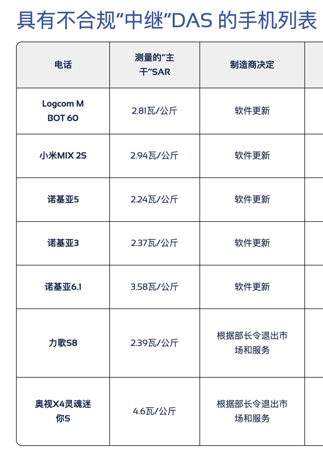 这SAR超标列表里边,不仅有小米。