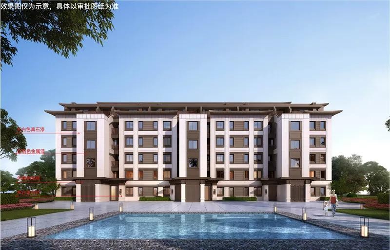 项目整体规划为37栋洋房,1-37#楼层高均为6层。外立面采用米白色真石漆、仿铜色金属漆、仿铜色铝板、米白色石材等。