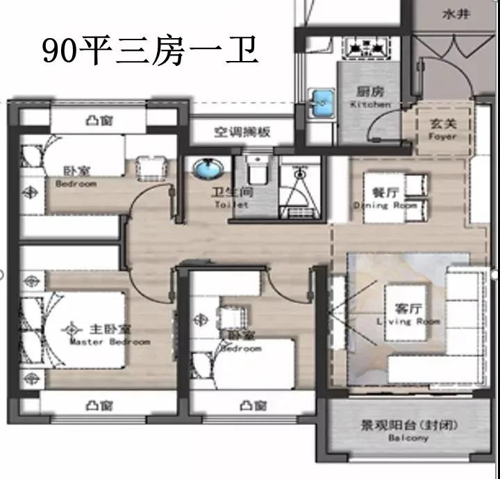 据称,该项目有三种户型:90平、110平和140平。