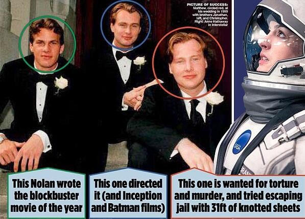 克里斯托弗·诺兰1970年出生于英国伦敦,父亲是地道的英国人,从事广告策划工作,母亲则是美国人,从事英语教师和空姐一职,他在家中排行老二,有哥哥马修·诺兰和弟弟乔纳森·诺兰。