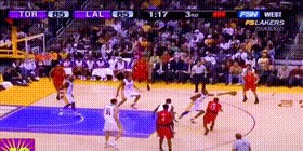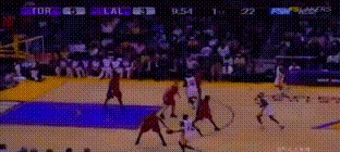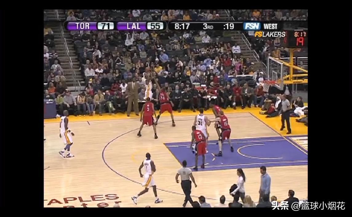 第三节最后一分钟,科比抢断迈克-詹姆斯,一条龙快下暴扣得分!湖人87:85反超猛龙!猛龙此时已经完全慌了手脚,相继打铁,斯马什-帕克和科比再拿4分!湖人91:85领先猛龙进入第四节!
