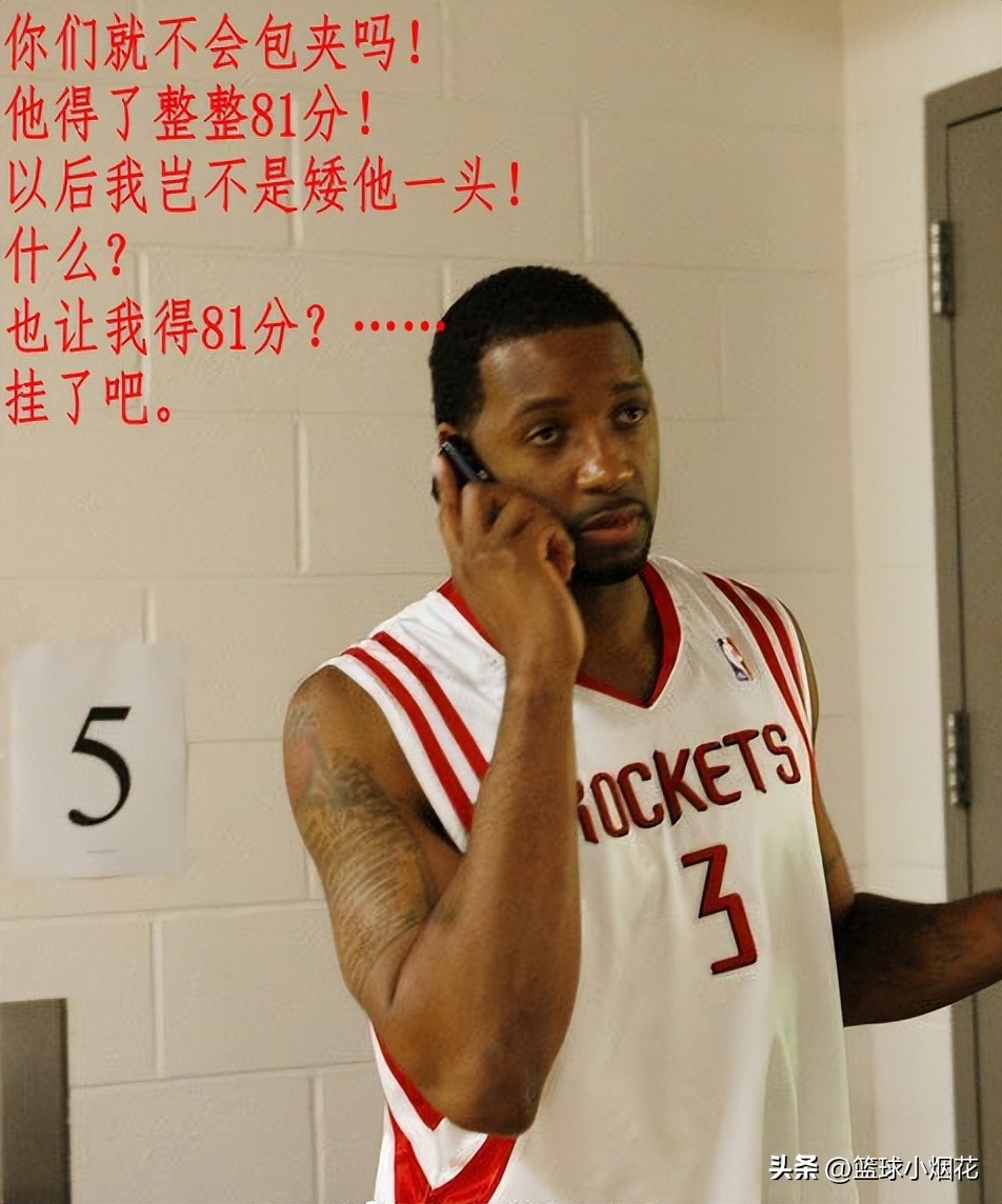 更搞笑的是麦迪,他在火箭和活塞比赛结束之后,就知道了科比单场轰下81分的事情,他马上打的电话给猛龙队自己的好友迈克-詹姆斯,将其一顿臭骂,质问他为什么不包夹科比……
