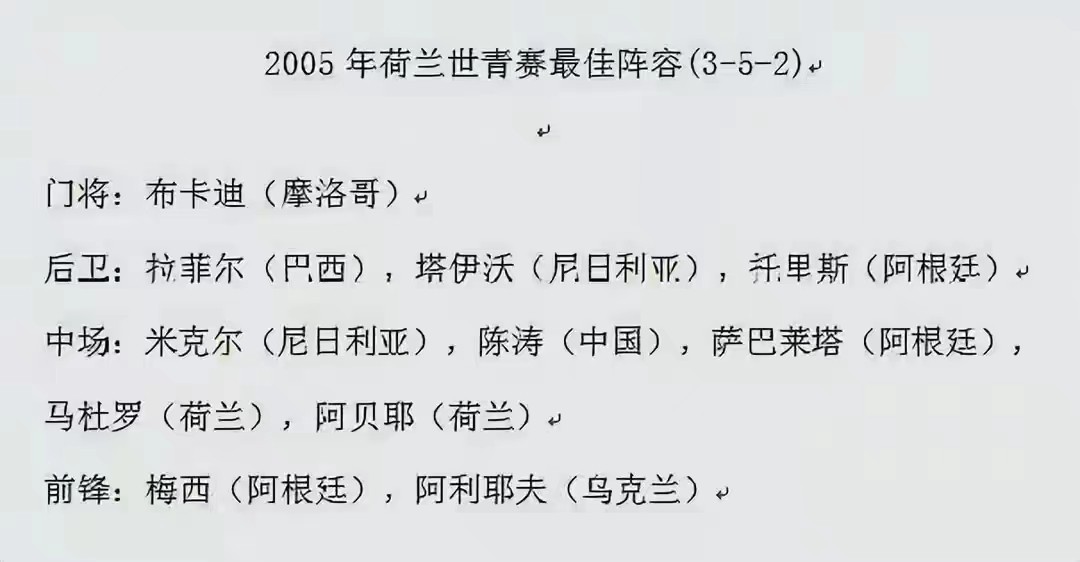 2005年荷兰青少年世青赛,就是陈涛的舞台,他在场上的定位是前腰,是国家队的组织核心,在陈涛的串联下,我们先是2-1战胜土耳其国足,之后又在少了一名球员的情况下,3-2战胜乌克兰国足,再4-1力压巴拿马国足,小组赛取得了全胜的战绩。