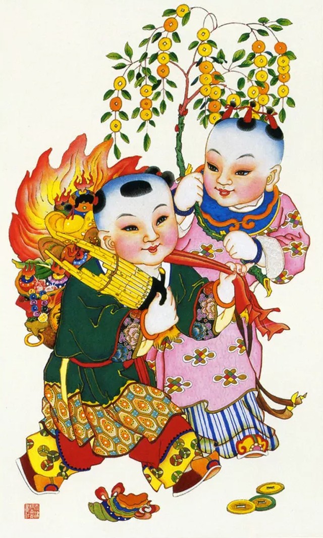 还记得小时候,农村的家家户户,一到过年,几乎都会在家里墙上张贴的一幅幅充满趣味的年画吗?画面的主角通常是一个或几个可爱的胖娃娃,他们有的穿着漂亮的花衣裳,还有的穿着小小的红肚兜,这些胖娃娃憨态可掬,满脸笑容。