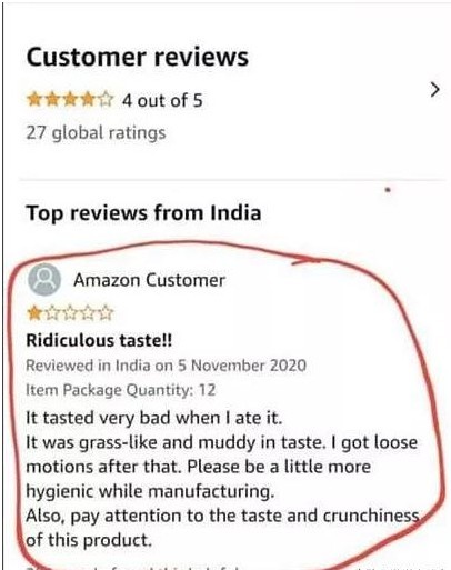 1、ridiculous taste!! (真是可笑的味道)!!看来英国小真的好失望,毫不犹豫给了一星差评,而且后面还带了两个感叹号,可见他当时有多生气。