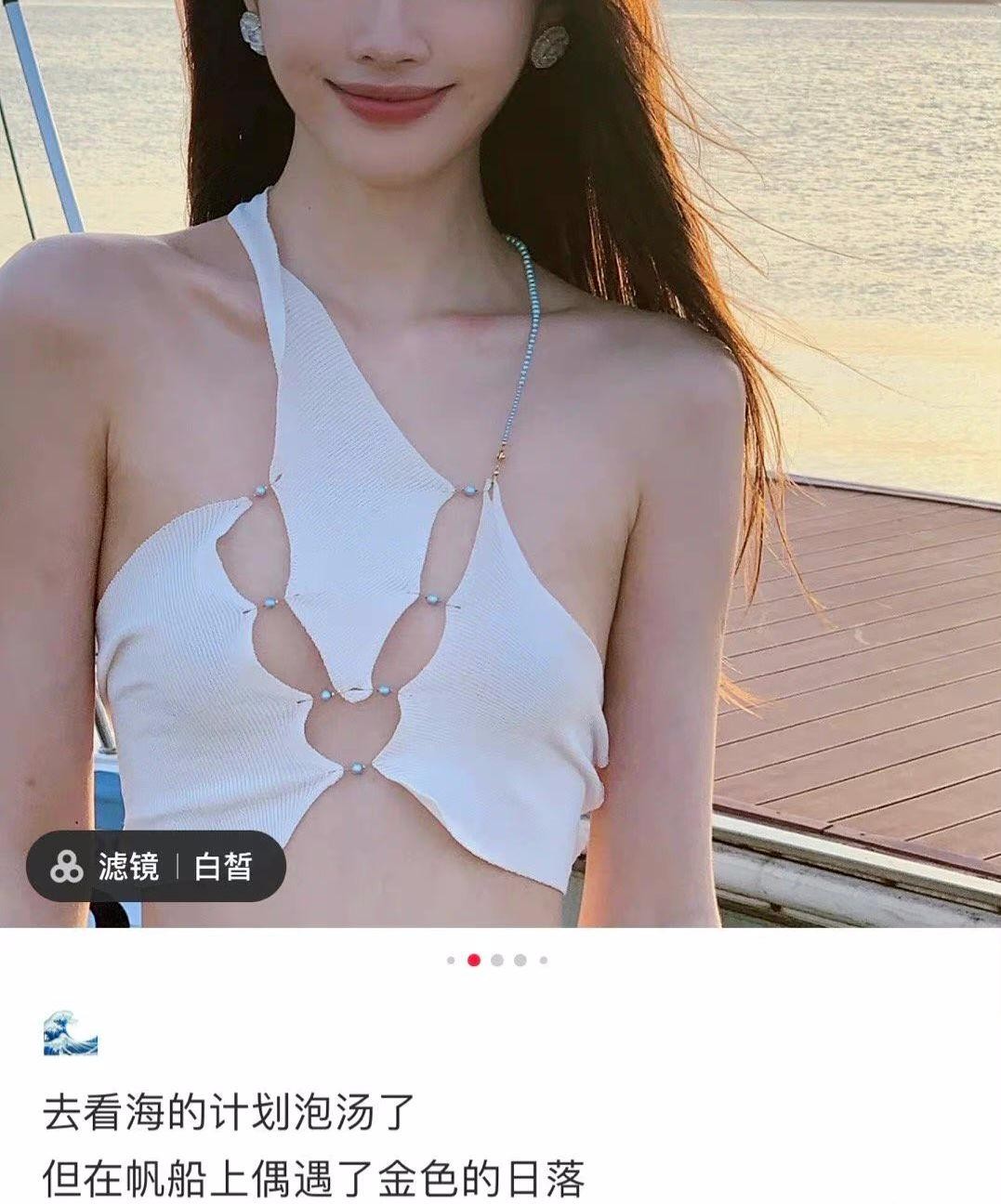 女明星都是如此,更不用想我们现实生活中的平凡女孩们。一位女网红发了一张自己在海边穿吊带的照片。
