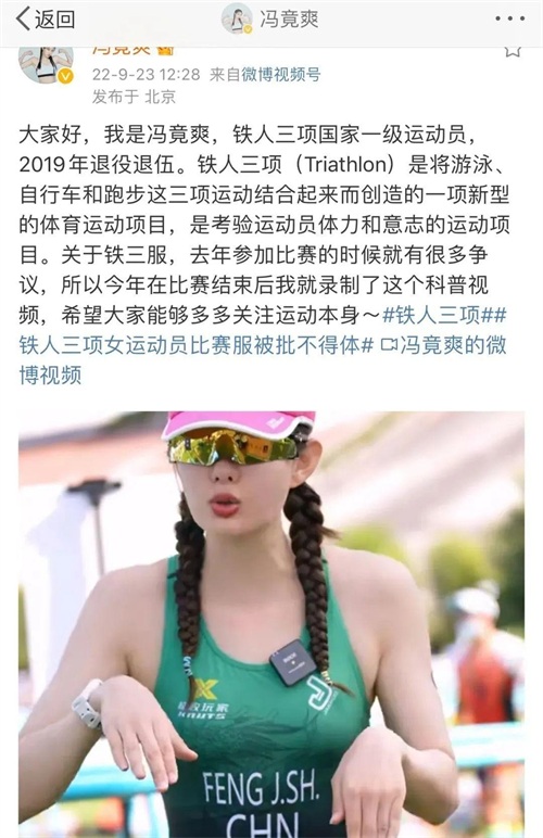 铁人三项比赛中获得第三的阿爽,在社交平台分享自己的比赛画面。